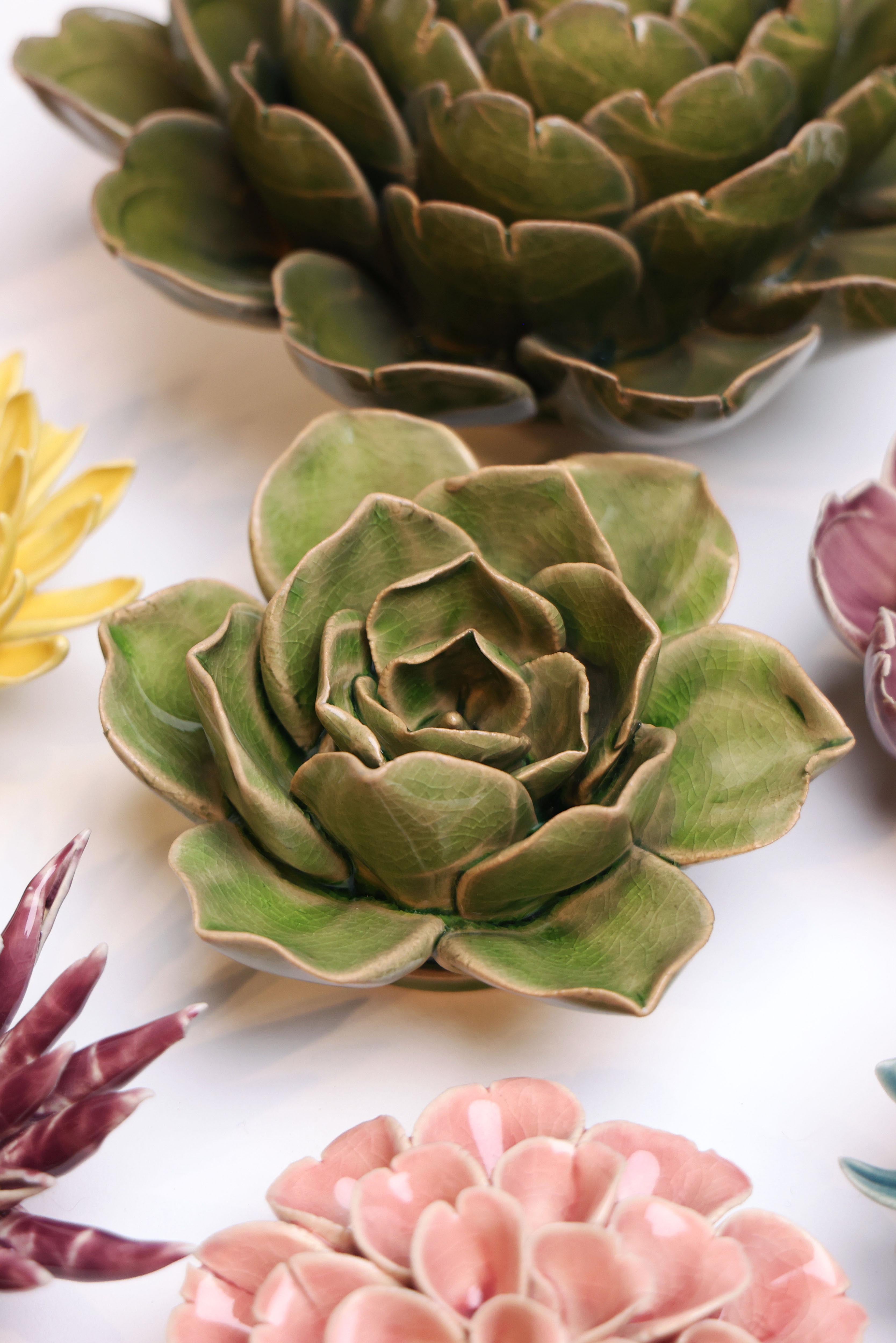 Bring the beauty of nature indoors with Chive’s green ceramic flowers. Each piece is thoughtfully designed to capture organic texture and earthy tones, adding a fresh, botanical feel to your home décor. Whether displayed on a wall, shelf, or as part of a custom floral arrangement, these handcrafted ceramic blooms offer a vibrant, long-lasting alternative to real plants. Perfect for modern, rustic, or minimalist spaces, our green ceramic flowers are a versatile design accent that adds depth and natural charm. Explore the collection and refresh your space with a touch of green.